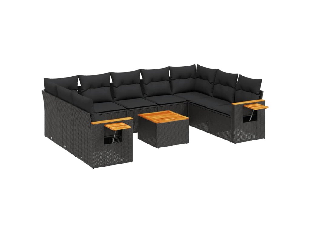 10dílná zahradní sedací souprava s poduškami černá polyratan 3259521