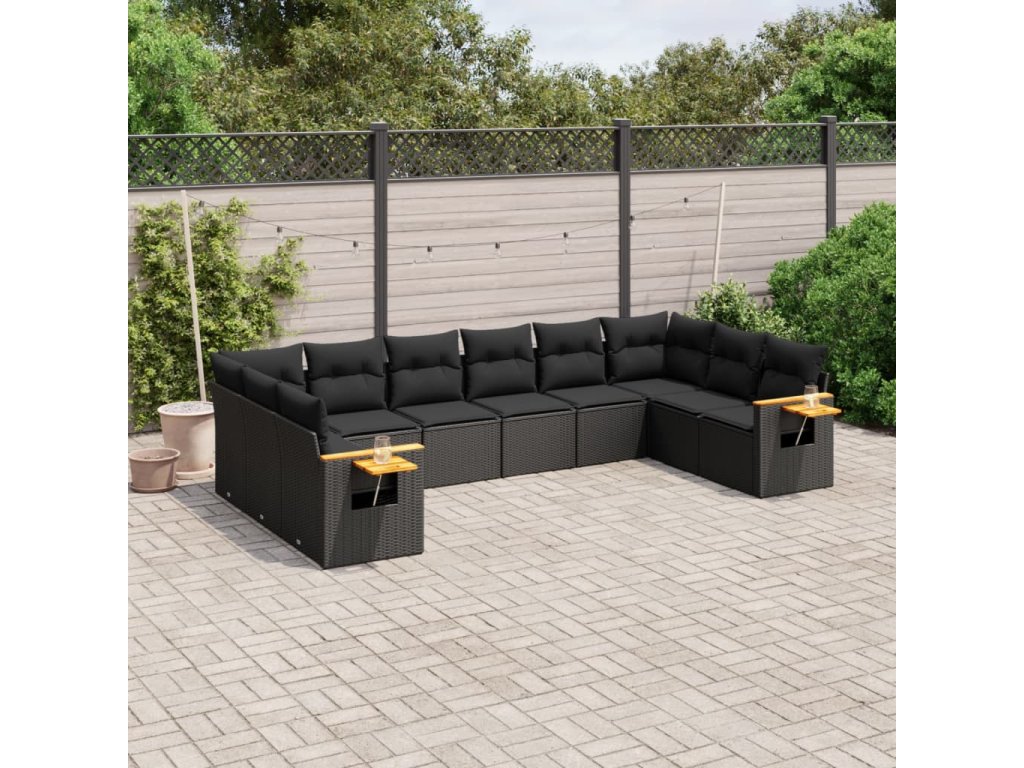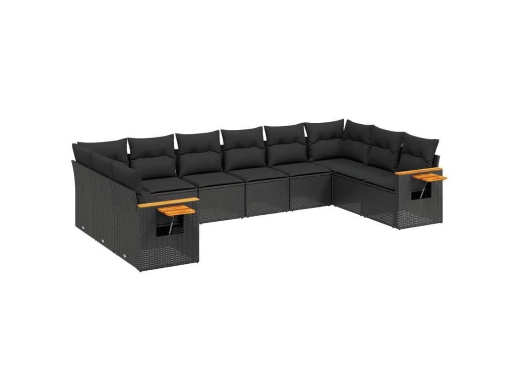 10dílná zahradní sedací souprava s poduškami černá polyratan 3259563