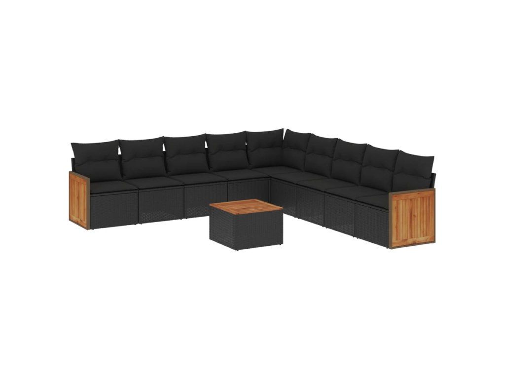 10dílná zahradní sedací souprava s poduškami černá polyratan 3260144