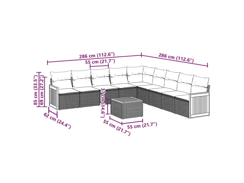Tato zahradní sedací souprava je dokonalým doplňkem vaší zahrady, terasy nebo dvorku a poskytne vám pohodlné a příjemné místo, kde si můžete povídat s rodinou a přáteli nebo jen tak odpočívat a užívat si pobyt venku.