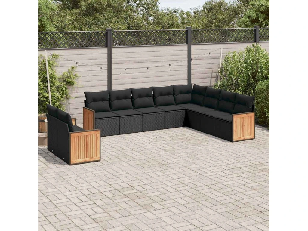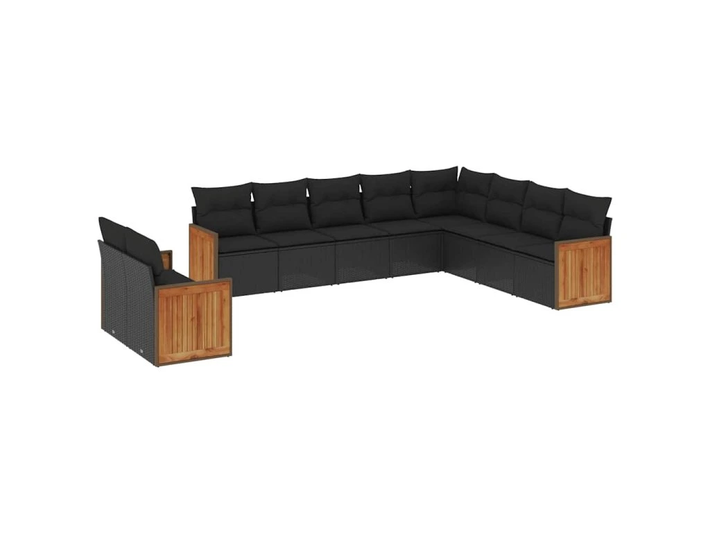 10dílná zahradní sedací souprava s poduškami černá polyratan 3260193