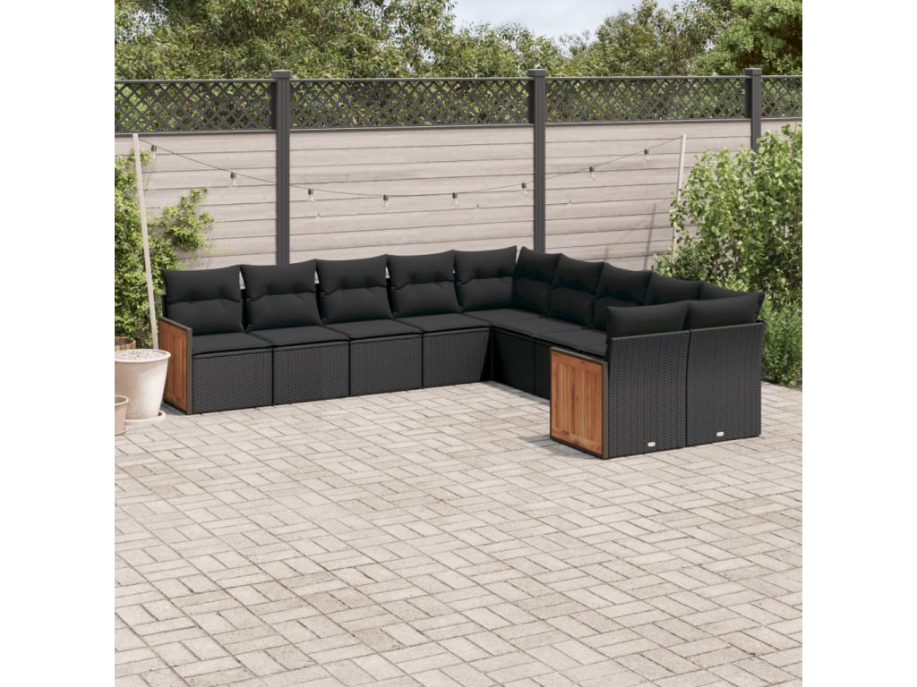 10dílná zahradní sedací souprava s poduškami černá polyratan 3260431