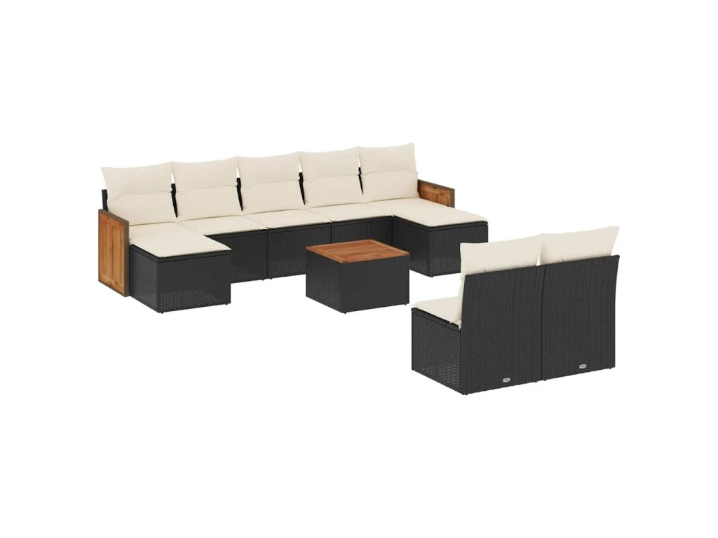 10dílná zahradní sedací souprava s poduškami černá polyratan 3260460