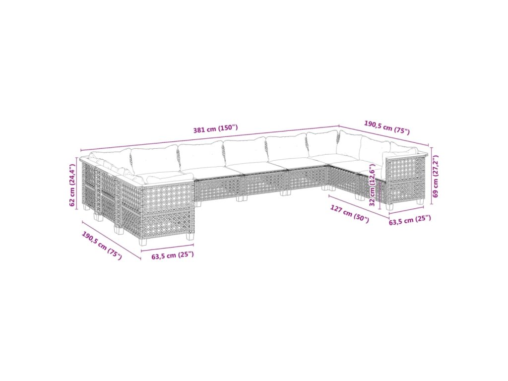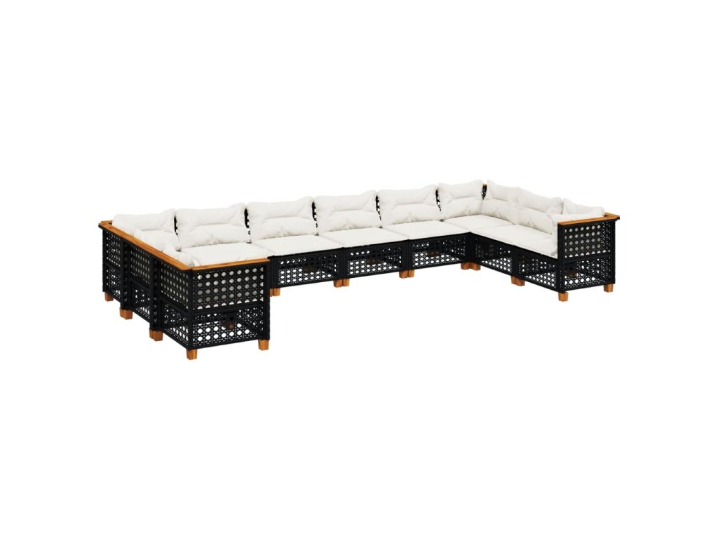 10dílná zahradní sedací souprava s poduškami černá polyratan 3262022