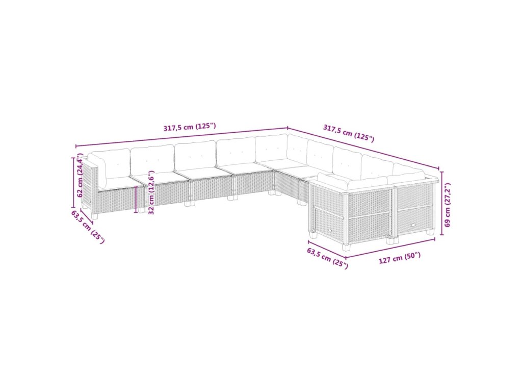 10dílná zahradní sedací souprava s poduškami černá polyratan 3262043