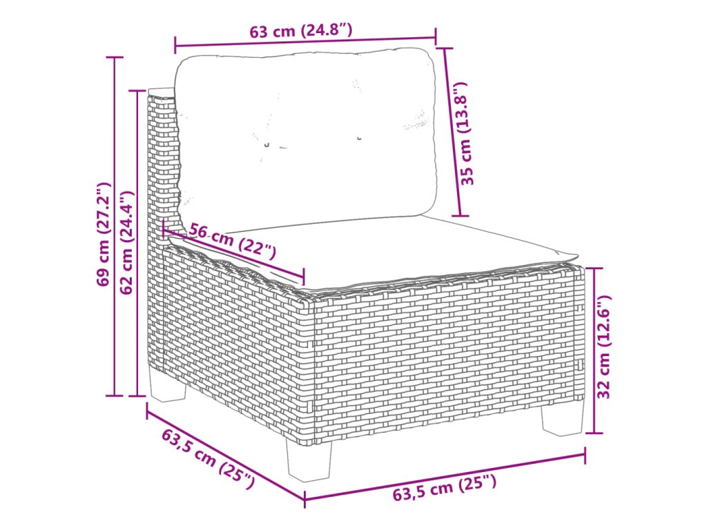 - Rozměry podušky na sedák (středový díl): 63,5 x 56,5 x 3 cm (Š x H x T)