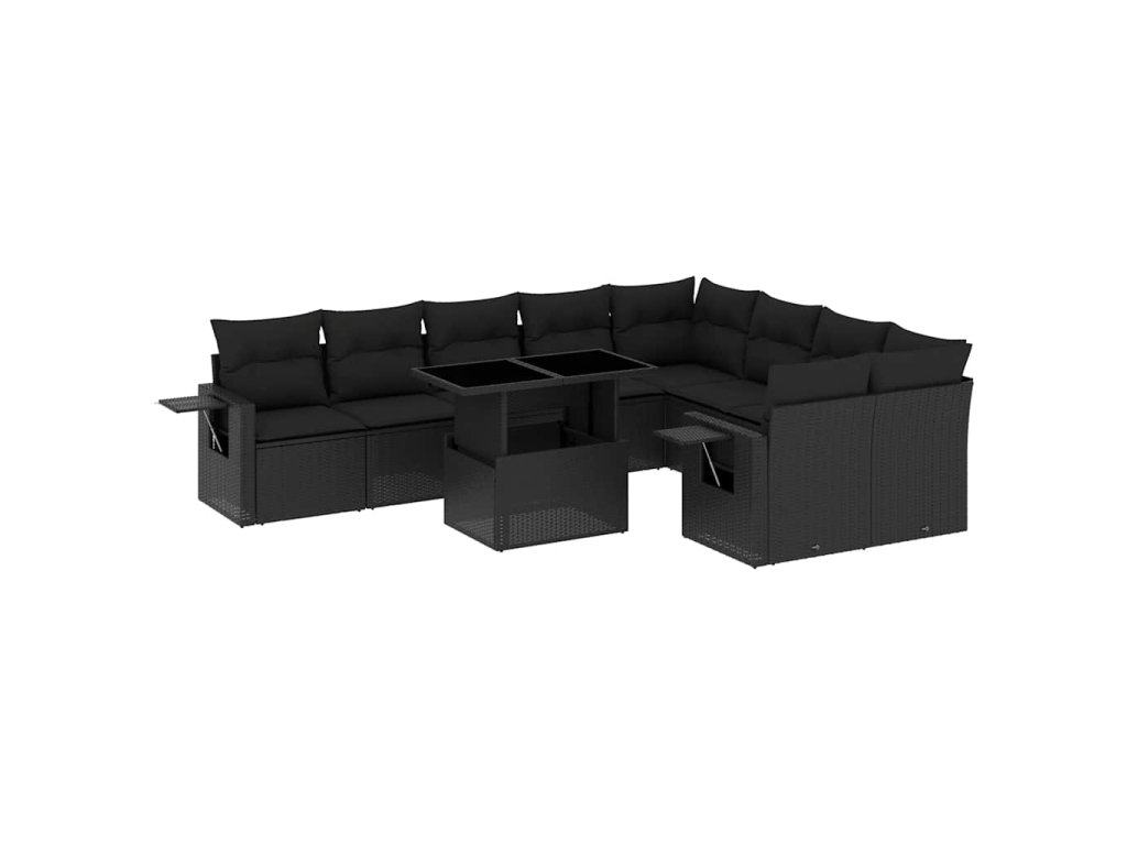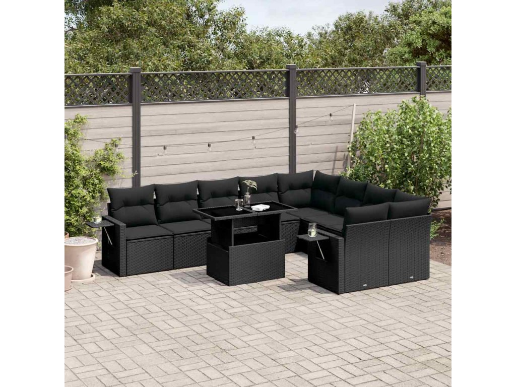 10dílná zahradní sedací souprava s poduškami černá polyratan 3268125