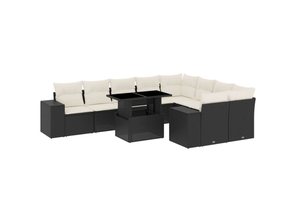 10dílná zahradní sedací souprava s poduškami černá polyratan 3269386