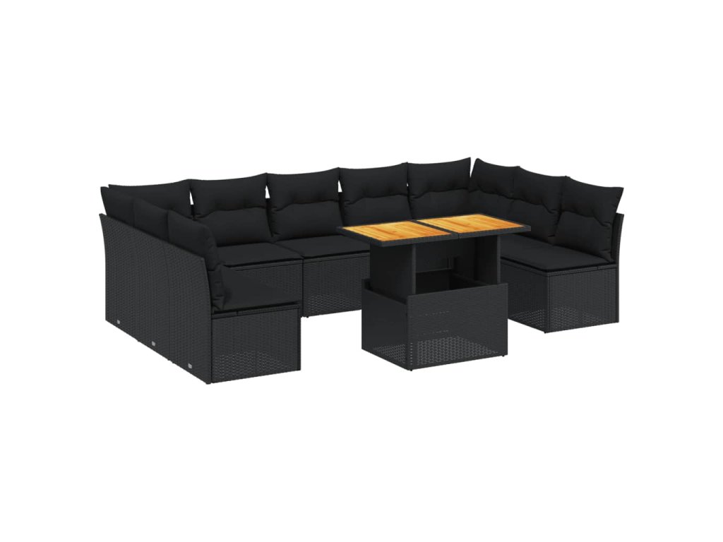 10dílná zahradní sedací souprava s poduškami černá polyratan 3271454
