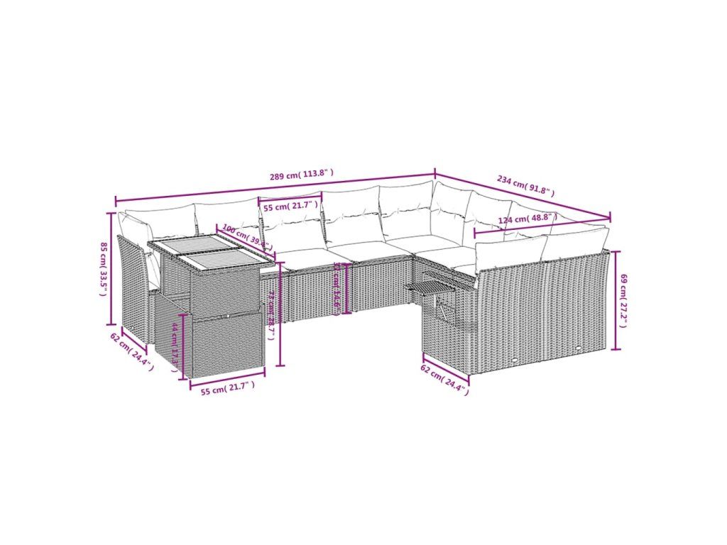 10dílná zahradní sedací souprava s poduškami černá polyratan 3271916