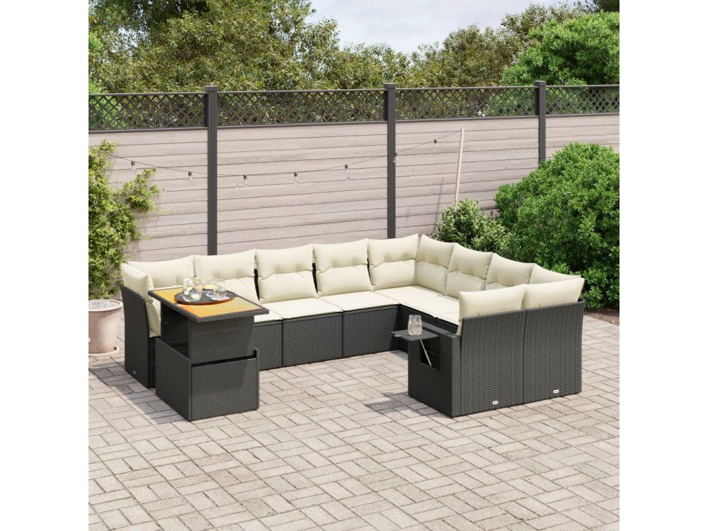 10dílná zahradní sedací souprava s poduškami černá polyratan 3271917