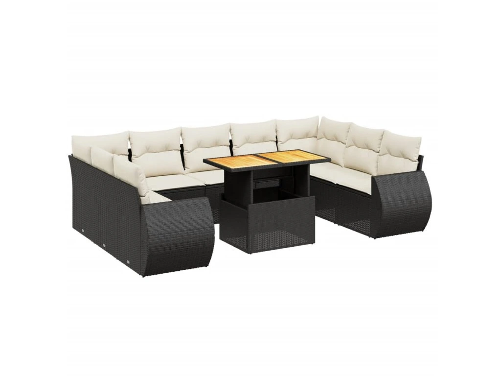 10dílná zahradní sedací souprava s poduškami černá polyratan 3272337