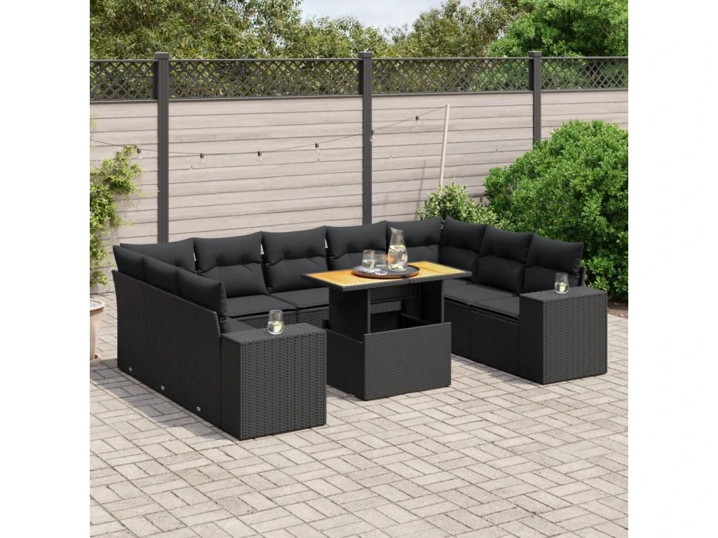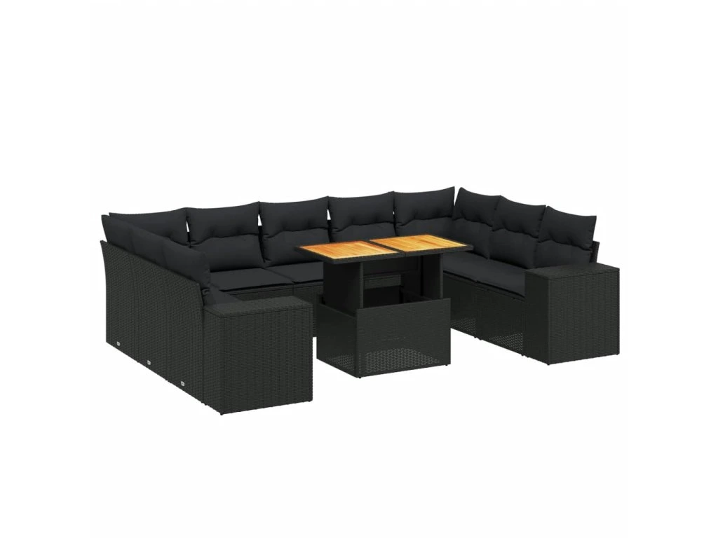10dílná zahradní sedací souprava s poduškami černá polyratan 3272777