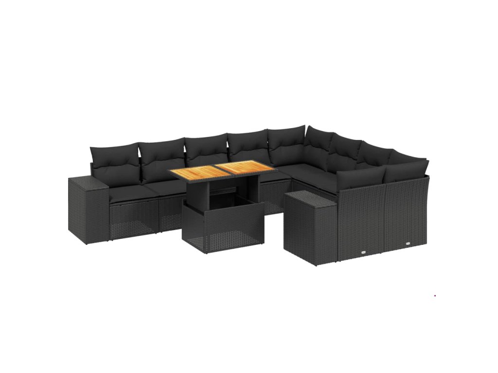 10dílná zahradní sedací souprava s poduškami černá polyratan 3272791