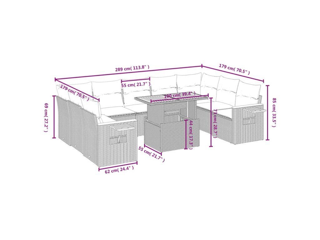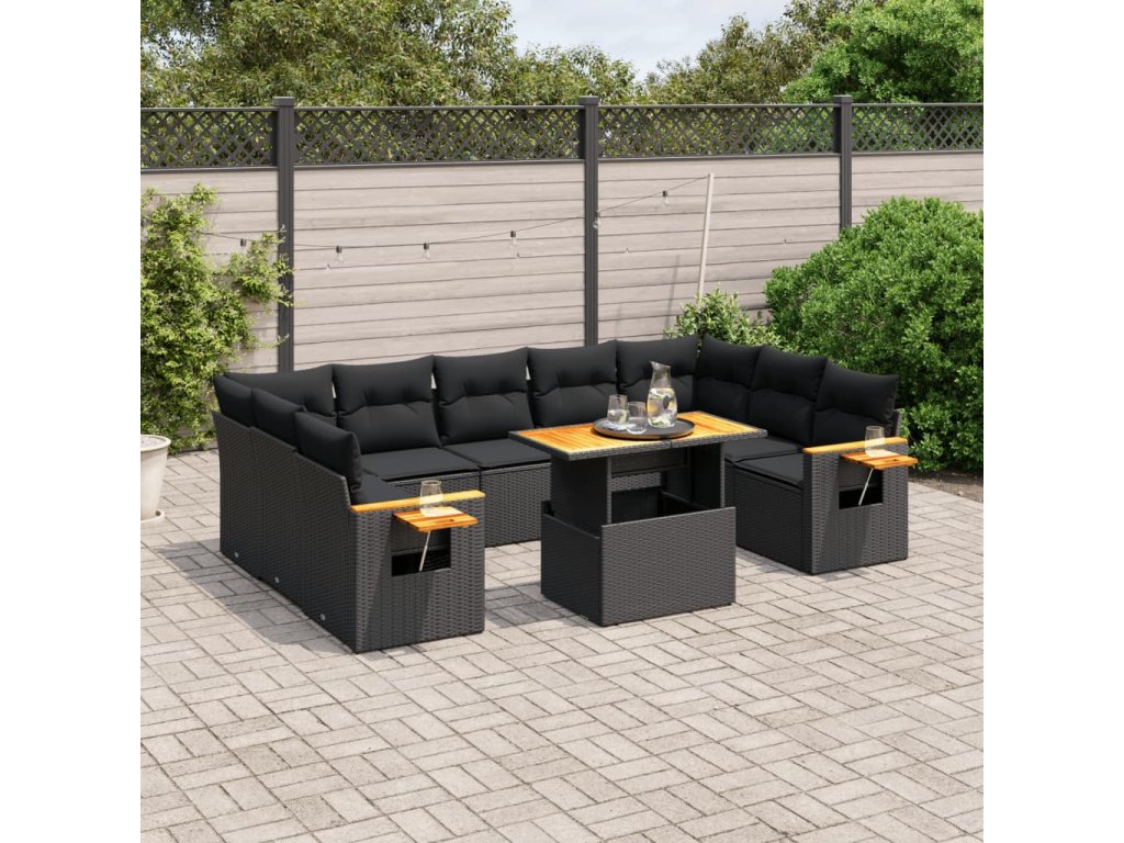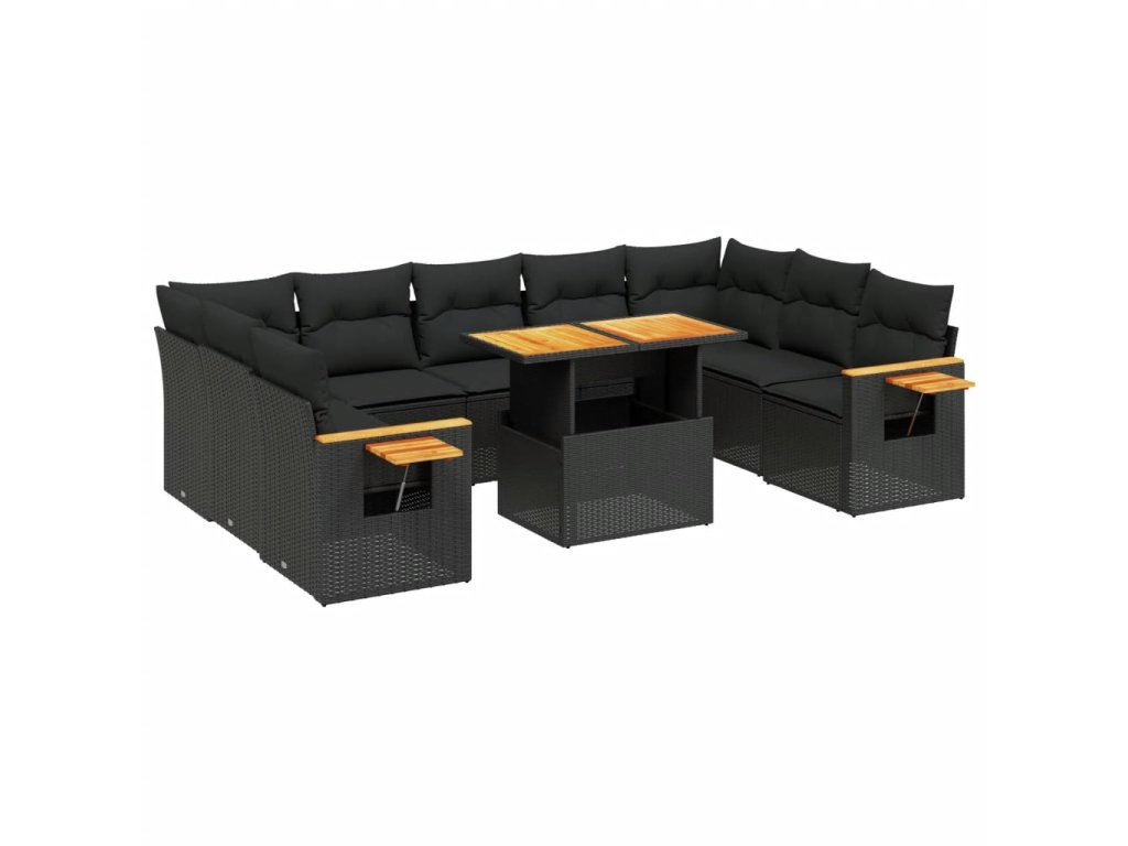 10dílná zahradní sedací souprava s poduškami černá polyratan 3273659