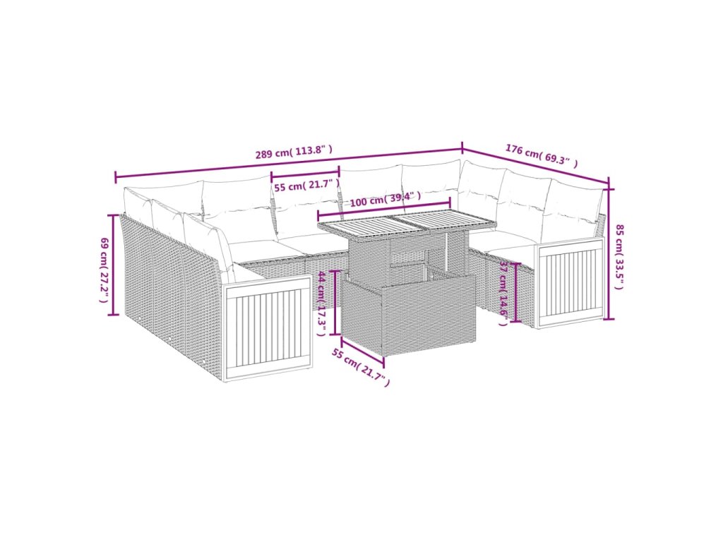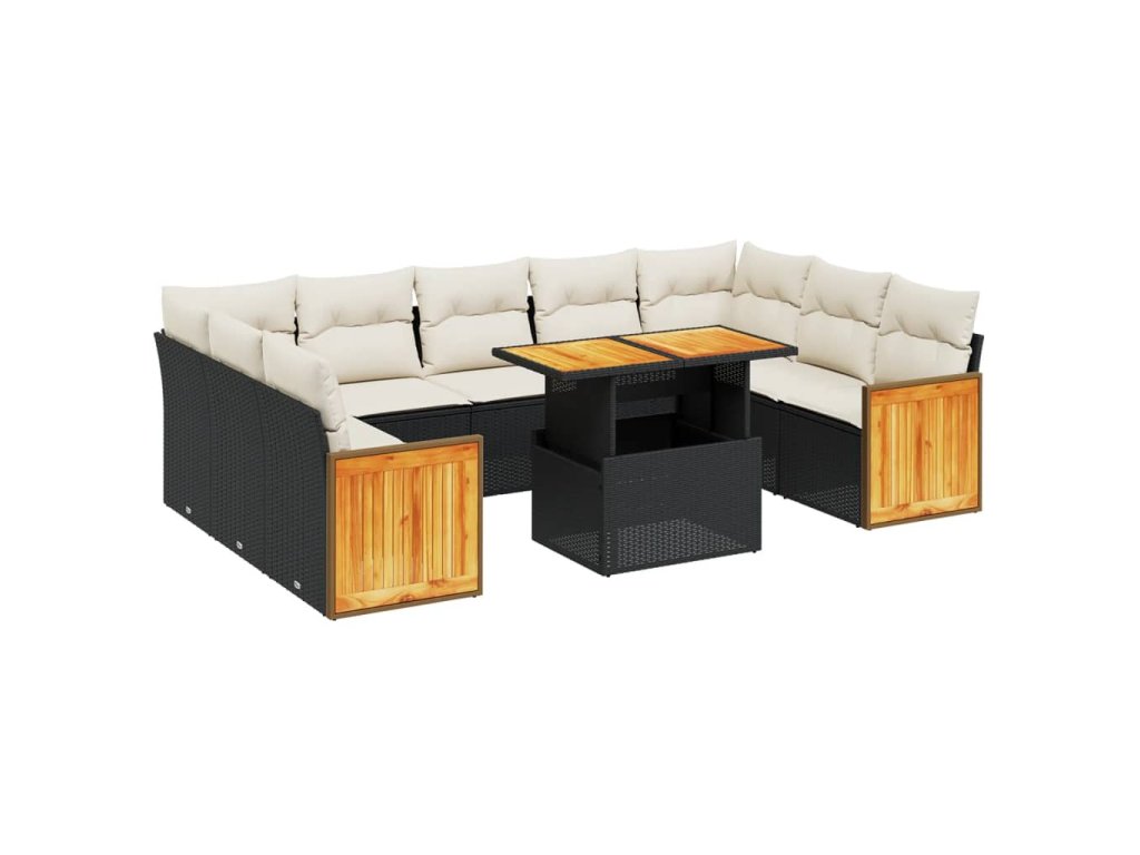 10dílná zahradní sedací souprava s poduškami černá polyratan 3274101
