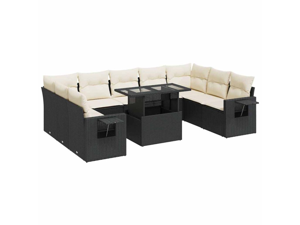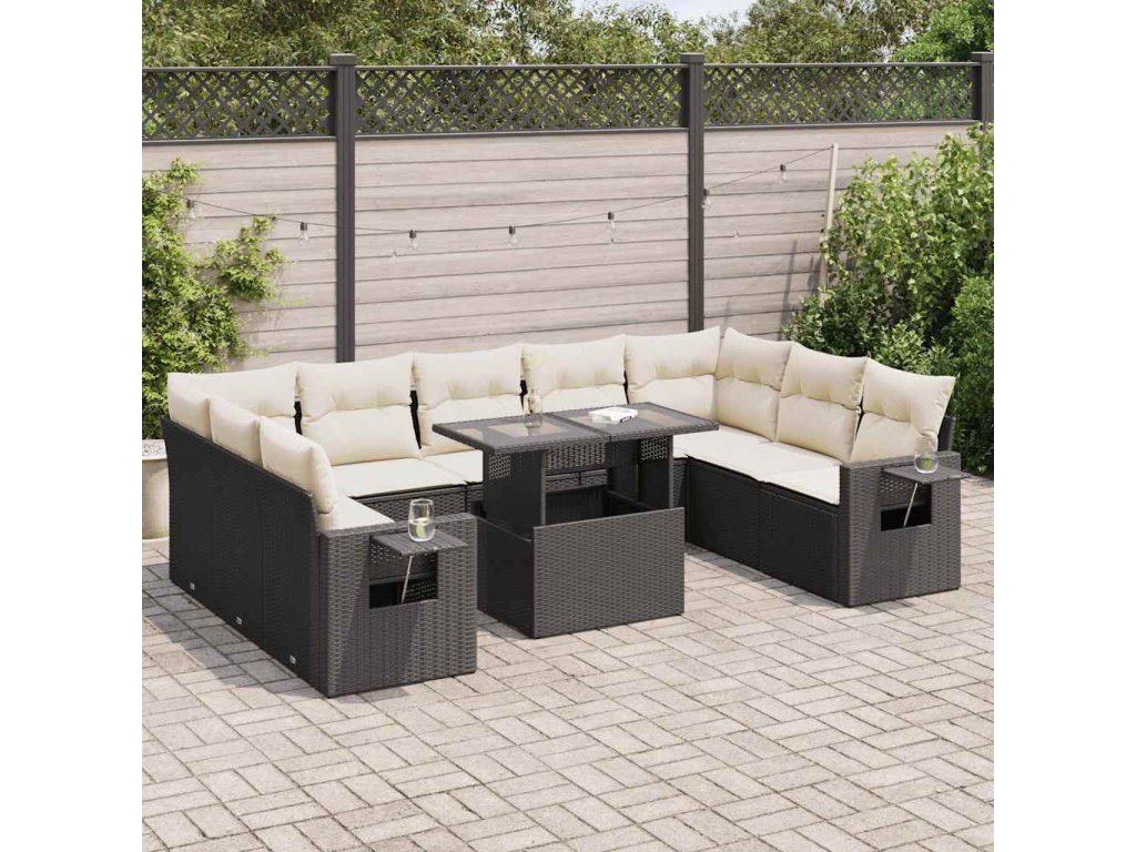 10dílná zahradní sedací souprava s poduškami černá polyratan 3326537