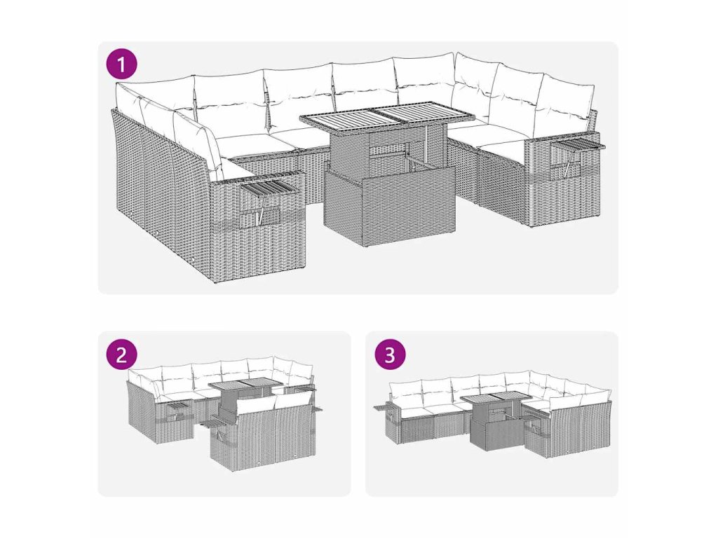 - Modulární design: Tato sada venkovního nábytku se vyznačuje modulární konstrukcí, je tedy zcela flexibilní a lze ji snadno přemisťovat, takže si můžete uspořádat venkovní nábytek dle vašich potřeb.