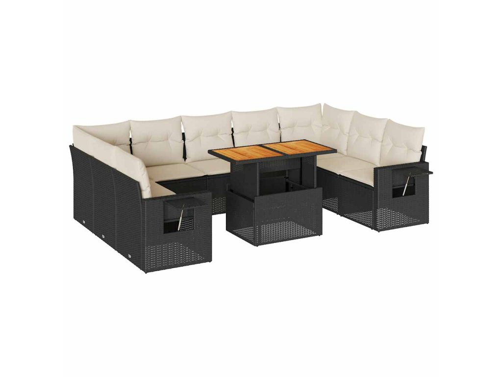 10dílná zahradní sedací souprava s poduškami černá polyratan 3327192
