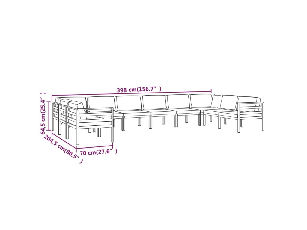 10dílná zahradní sedací souprava s poduškami hliník antracitová 3107816
