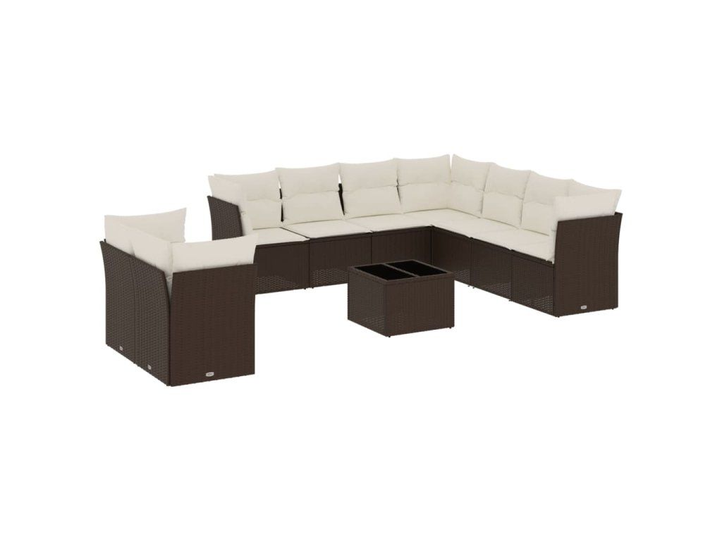 10dílná zahradní sedací souprava s poduškami hnědá polyratan 3217853
