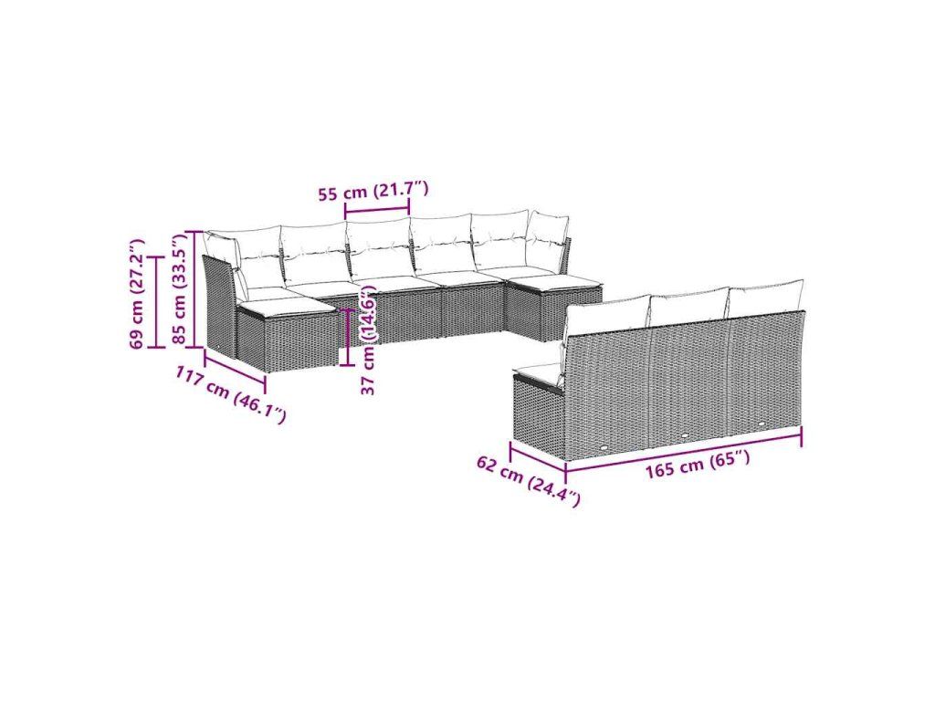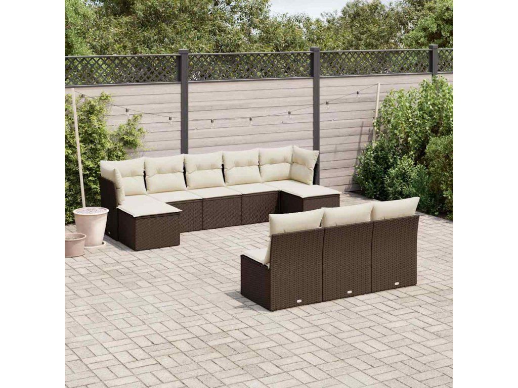 10dílná zahradní sedací souprava s poduškami hnědá polyratan 3218293