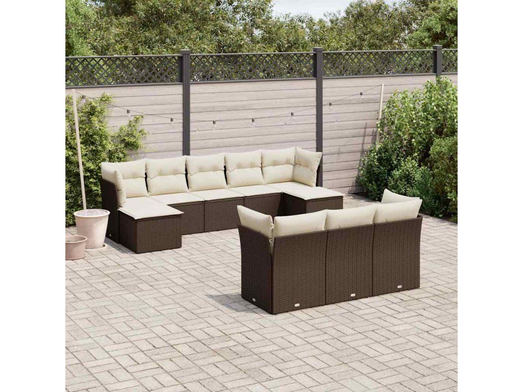 10dílná zahradní sedací souprava s poduškami hnědá polyratan 3218333