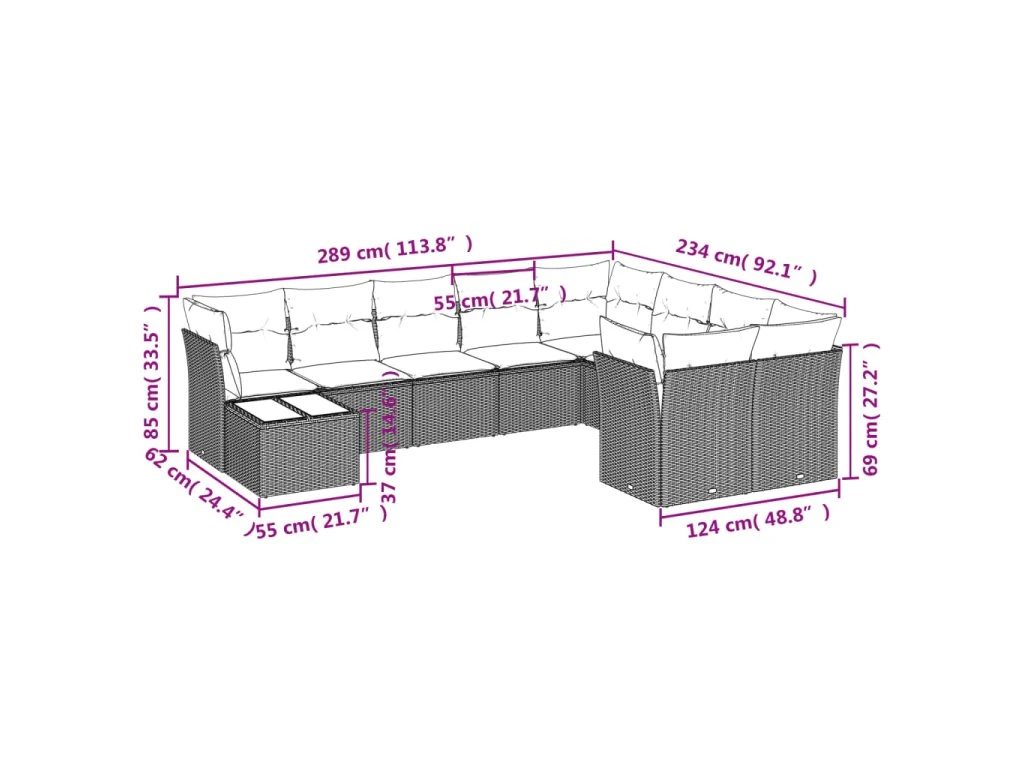 Tato zahradní sedací souprava je dokonalým doplňkem vaší zahrady, terasy nebo dvorku a poskytne vám pohodlné a příjemné místo, kde si můžete povídat s rodinou a přáteli nebo jen tak odpočívat a užívat si pobyt venku.