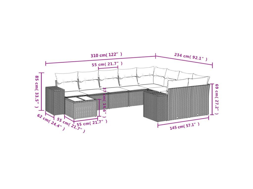 10dílná zahradní sedací souprava s poduškami hnědá polyratan 3255400