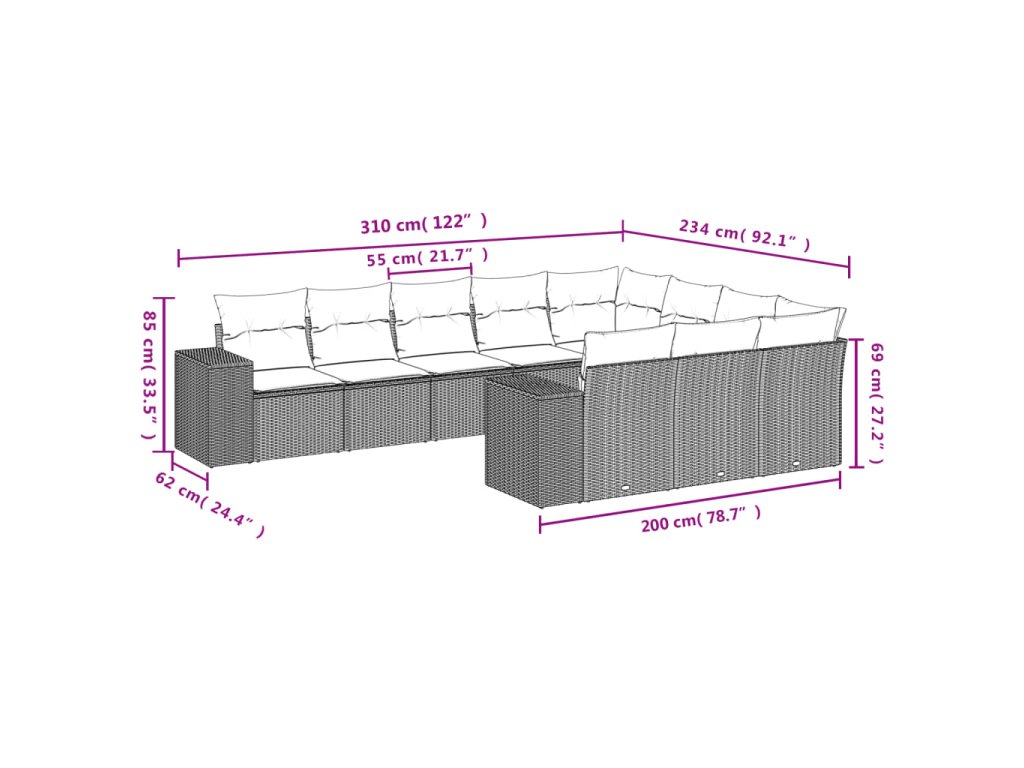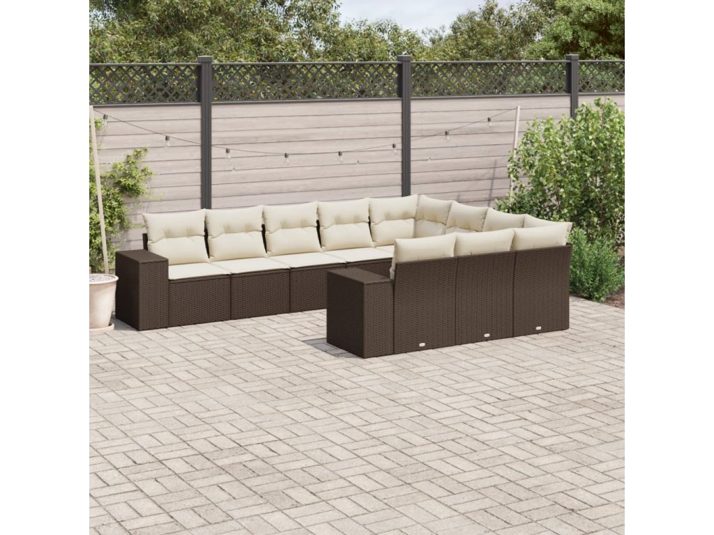 10dílná zahradní sedací souprava s poduškami hnědá polyratan 3255430