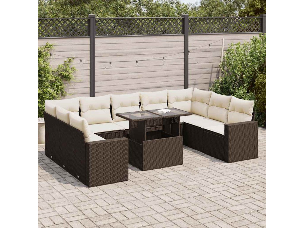 10dílná zahradní sedací souprava s poduškami hnědá polyratan 3326384
