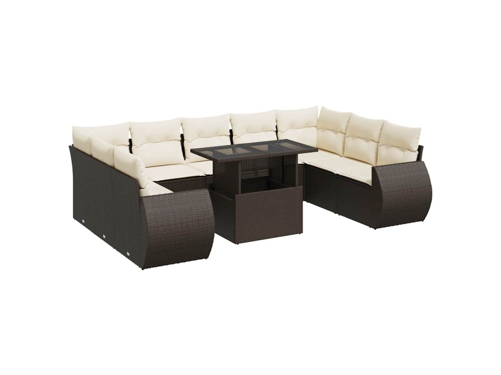 10dílná zahradní sedací souprava s poduškami hnědá polyratan 3326704