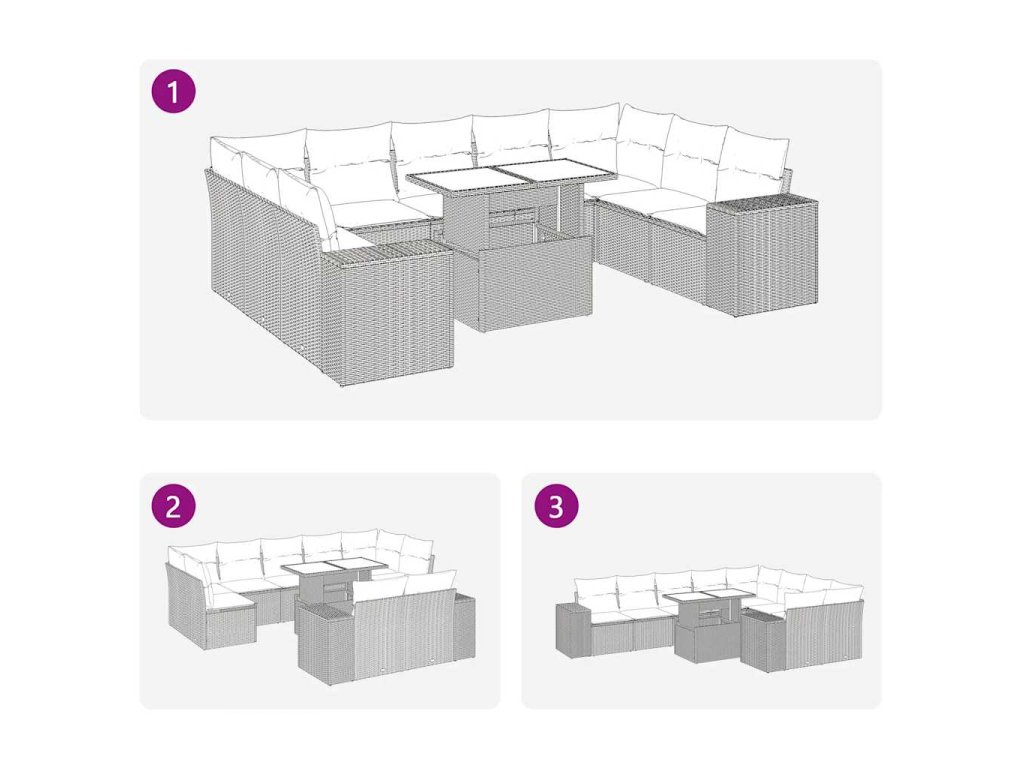 - Modulární design: Tato sada venkovního nábytku se vyznačuje modulární konstrukcí, je tedy zcela flexibilní a lze ji snadno přemisťovat, takže si můžete uspořádat venkovní nábytek dle vašich potřeb.