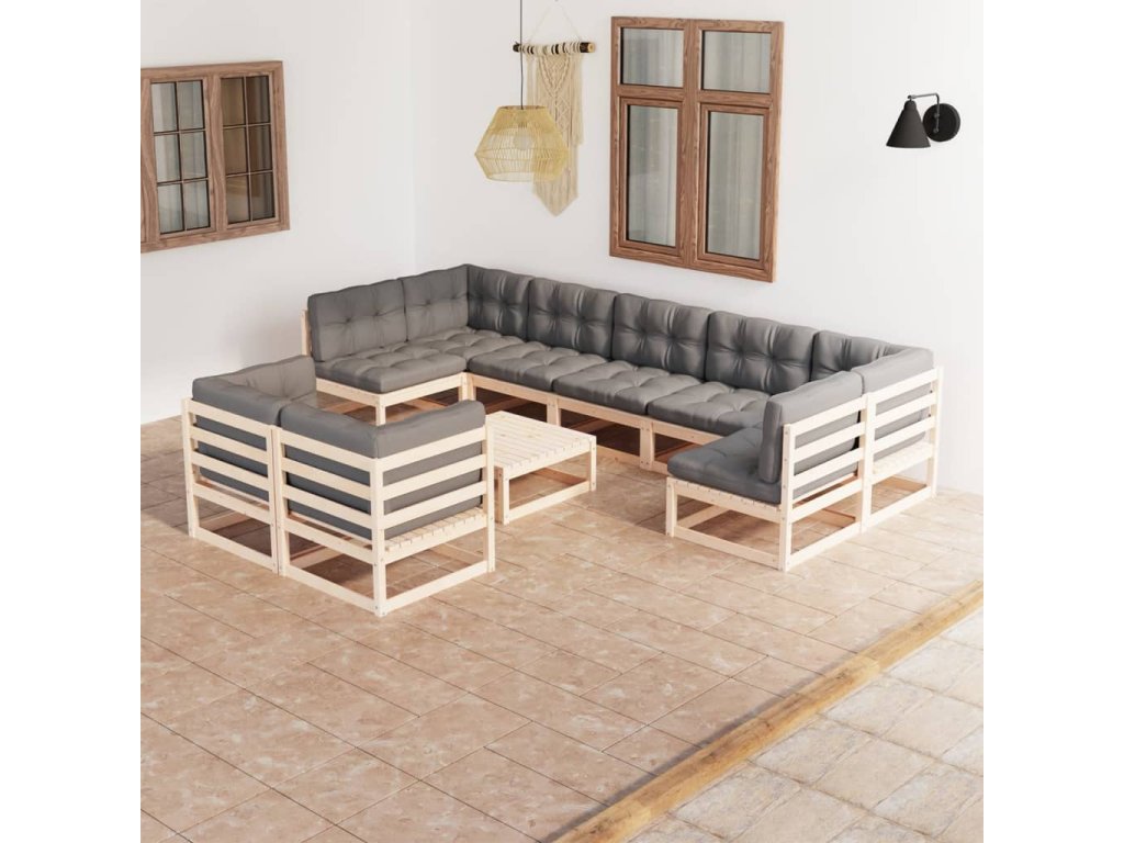 10dílná zahradní sedací souprava s poduškami masivní borovice 3077259