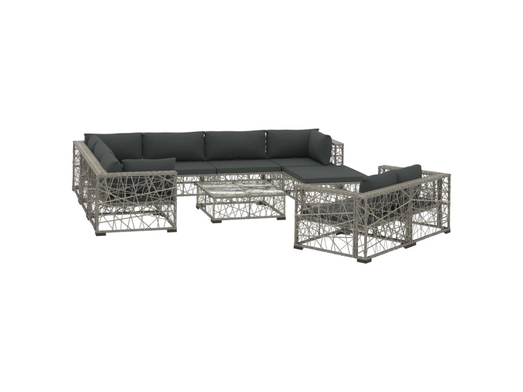 10dílná zahradní sedací souprava s poduškami polyratan šedá 46810