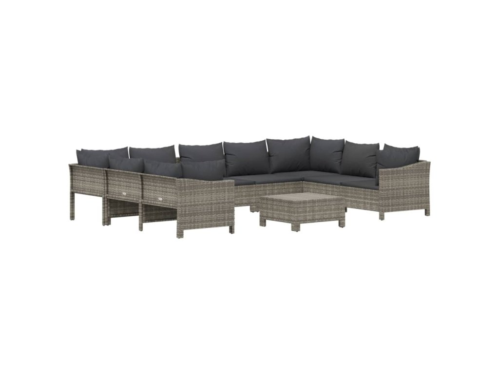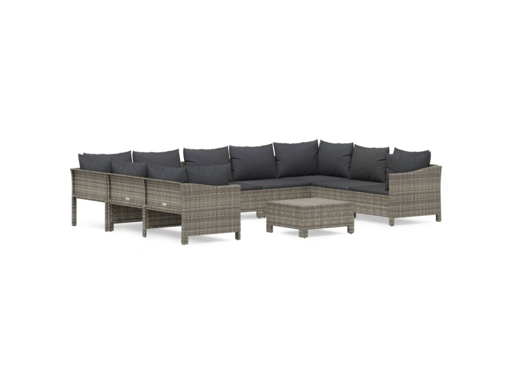 10dílná zahradní sedací souprava s poduškami šedá polyratan 3187305