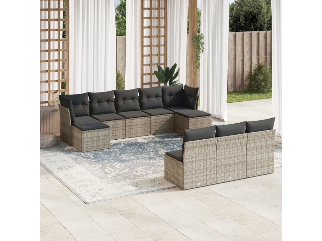 10dílná zahradní sedací souprava s poduškami šedá polyratan 3218290