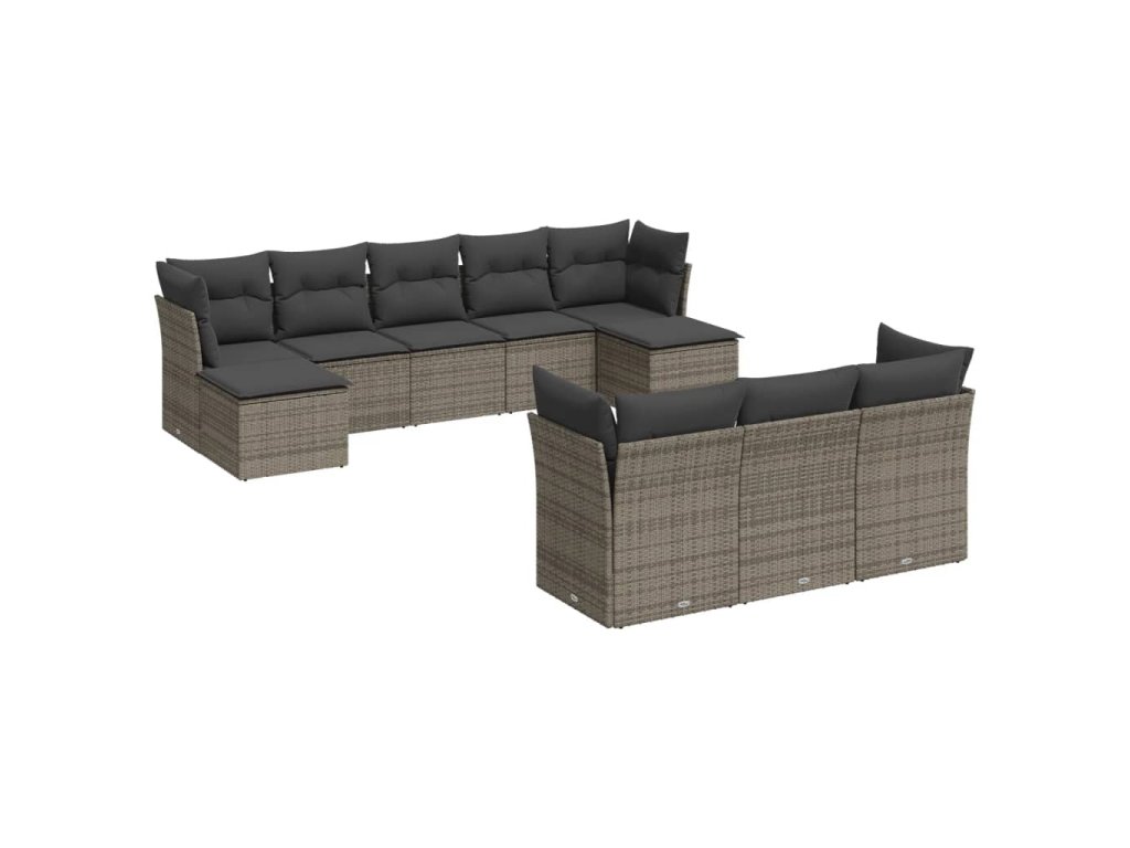 10dílná zahradní sedací souprava s poduškami šedá polyratan 3218330