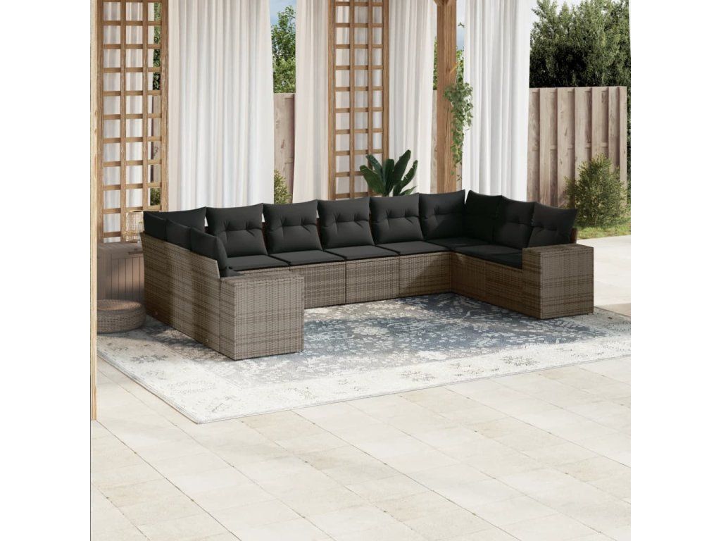 10dílná zahradní sedací souprava s poduškami šedá polyratan 3223069