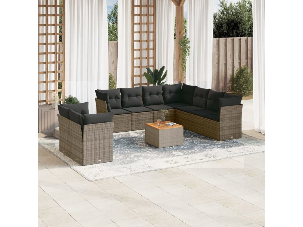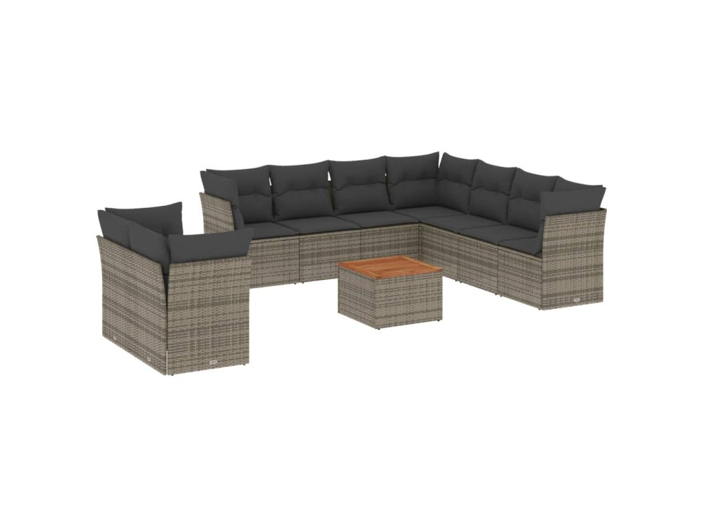 10dílná zahradní sedací souprava s poduškami šedá polyratan 3223715