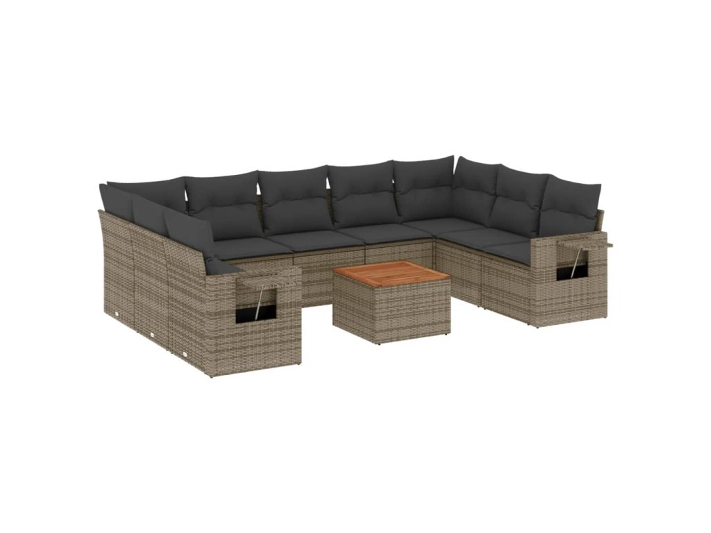 10dílná zahradní sedací souprava s poduškami šedá polyratan 3224709