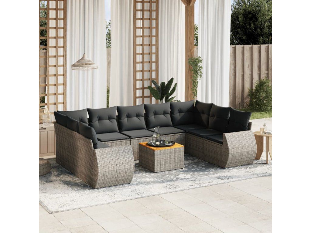 10dílná zahradní sedací souprava s poduškami šedá polyratan 3225150