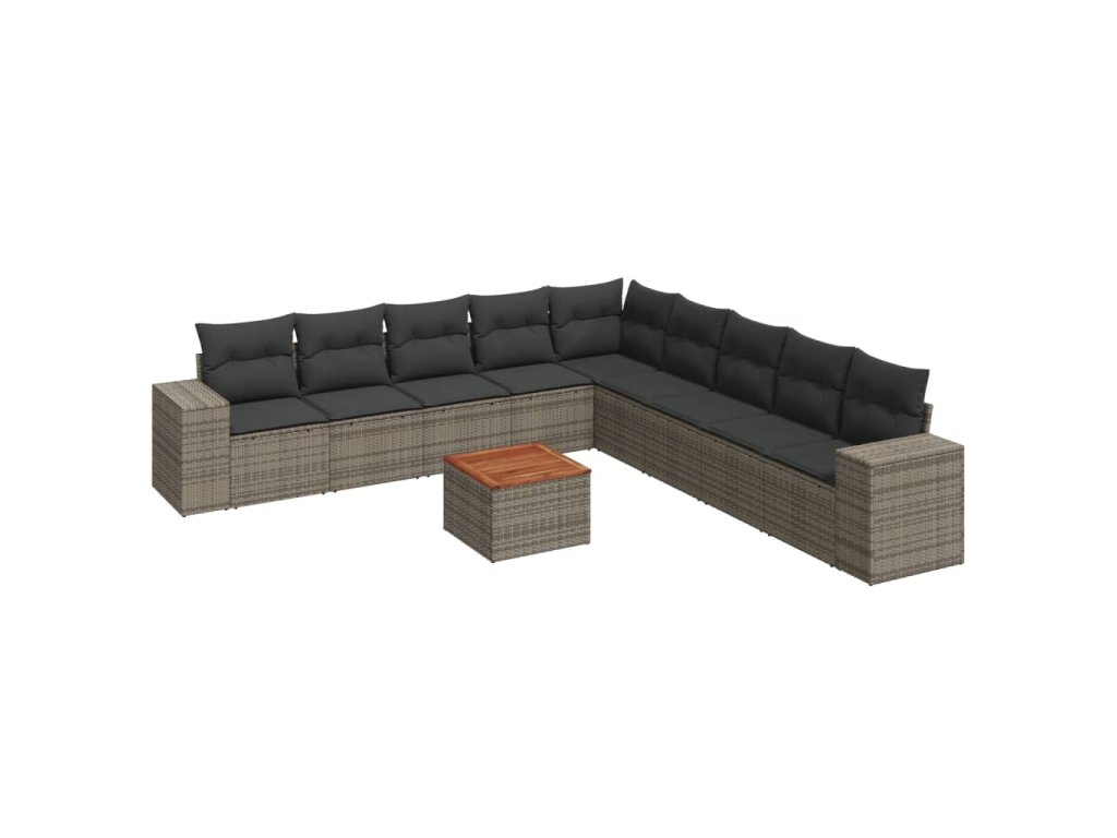 10dílná zahradní sedací souprava s poduškami šedá polyratan 3225493