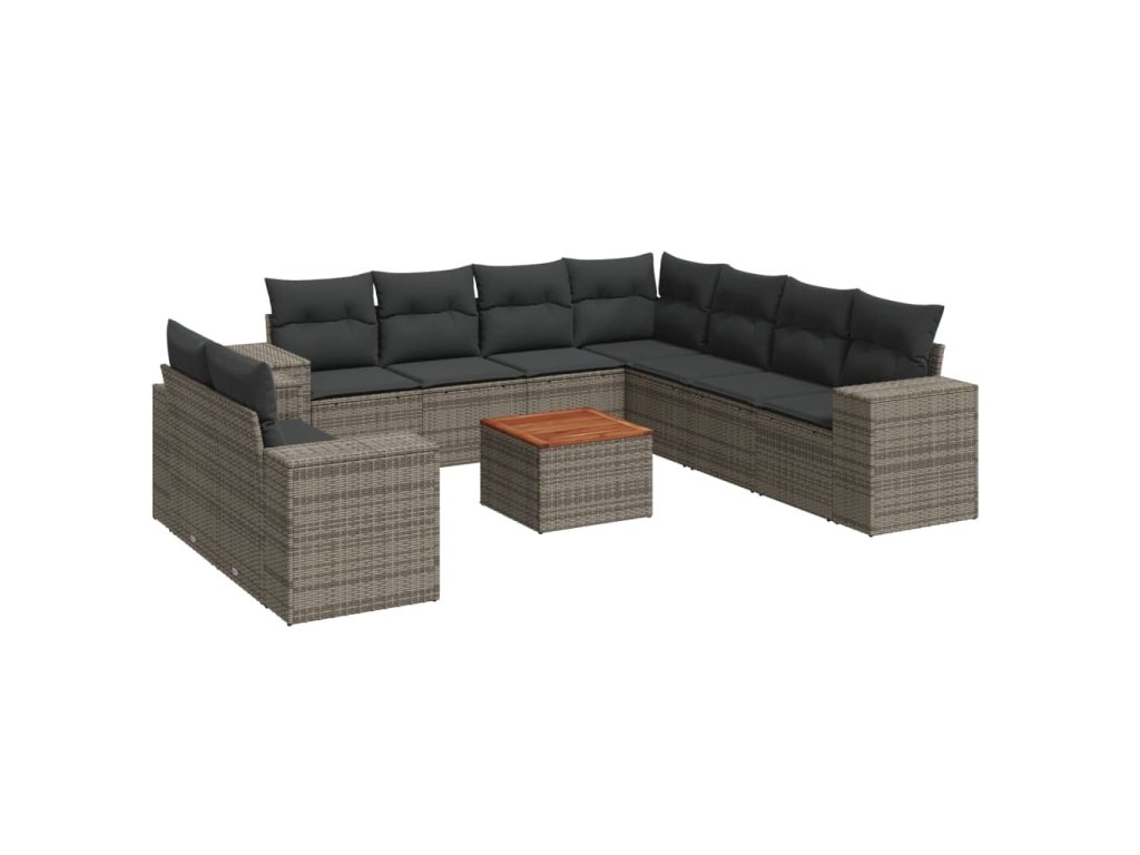 10dílná zahradní sedací souprava s poduškami šedá polyratan 3225514