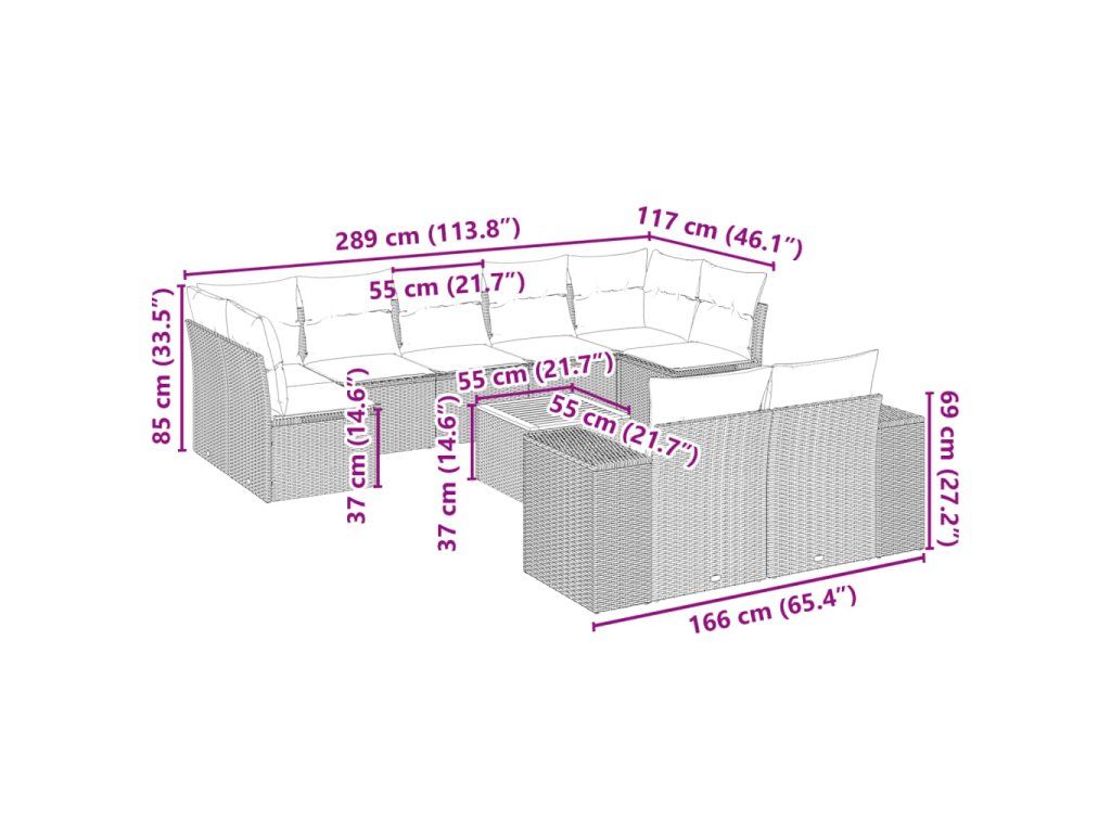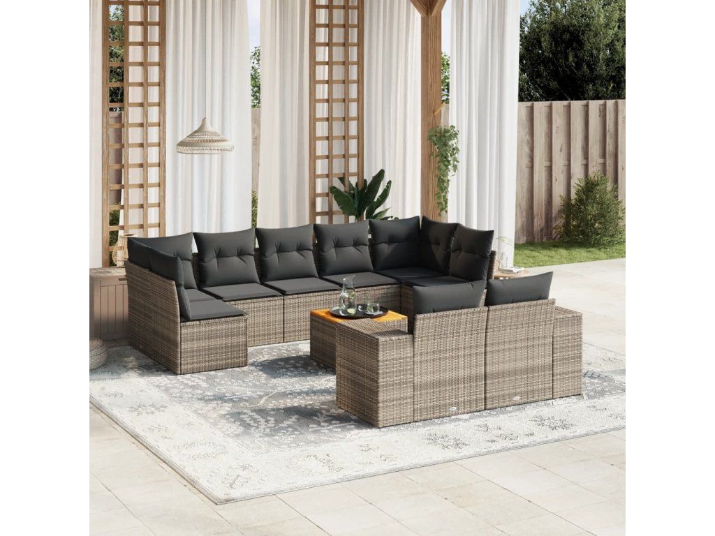 10dílná zahradní sedací souprava s poduškami šedá polyratan 3225598