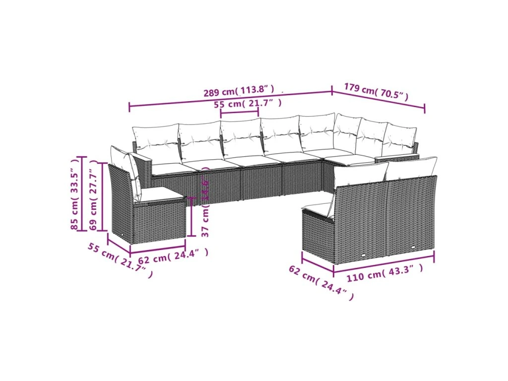 10dílná zahradní sedací souprava s poduškami šedá polyratan 3226074