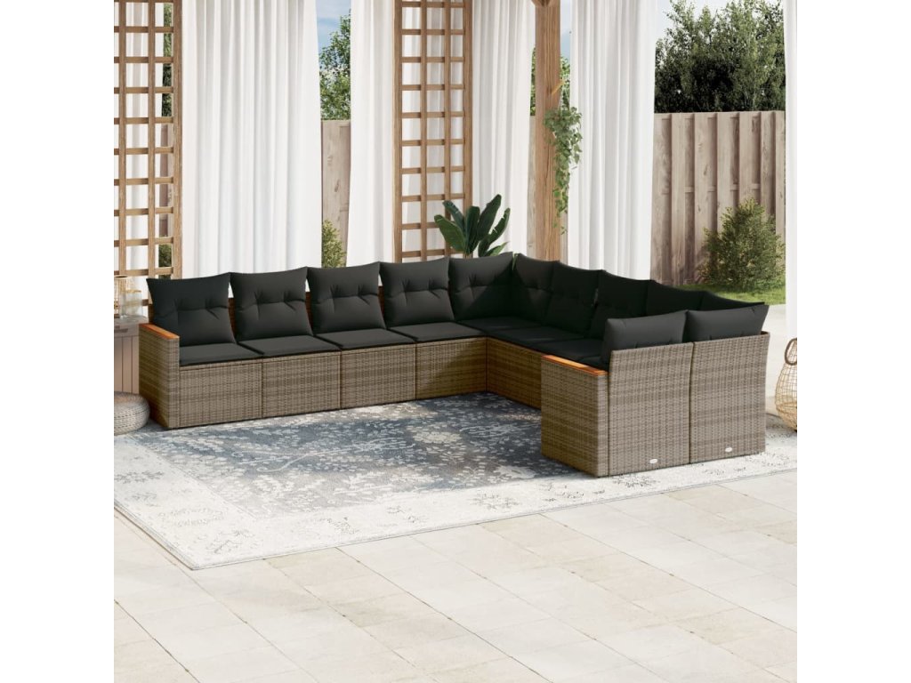 10dílná zahradní sedací souprava s poduškami šedá polyratan 3226354