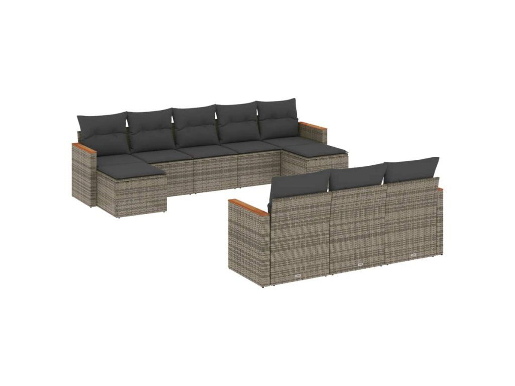 10dílná zahradní sedací souprava s poduškami šedá polyratan 3226417