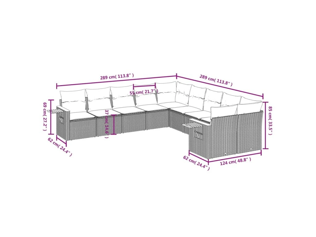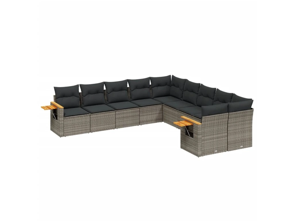10dílná zahradní sedací souprava s poduškami šedá polyratan 3227194