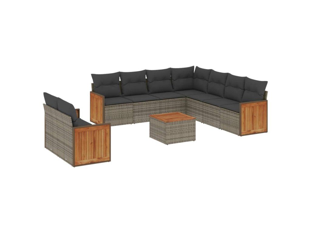 10dílná zahradní sedací souprava s poduškami šedá polyratan 3227789